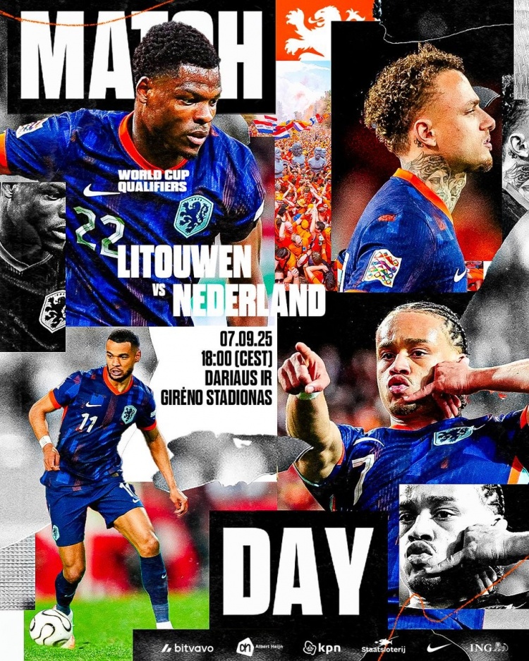 9月7日,荷兰国家队官方公布了世预赛欧洲区G组小组赛的预热海报。球队将于北京时间9月8日0:00客场挑战立陶宛队。